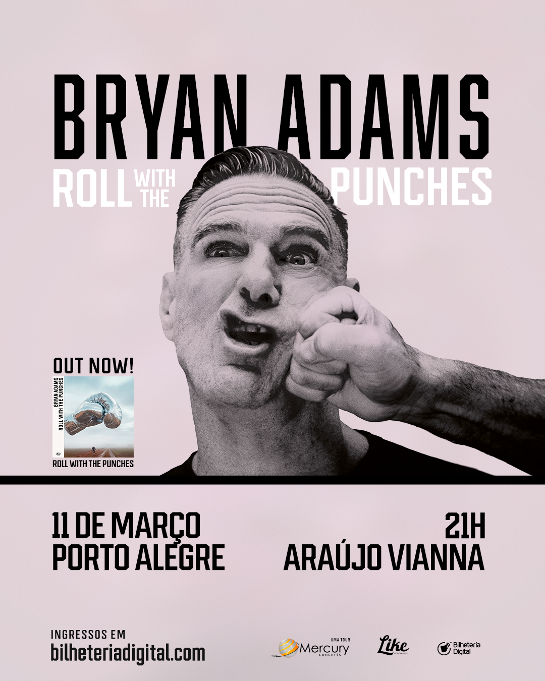 O ícone Bryan Adams traz a turnê “Roll With The Punches Tour” a Porto Alegre em 2026. O show na capital gaúcha acontece no dia 11 de março, no Auditório Araújo Vianna.